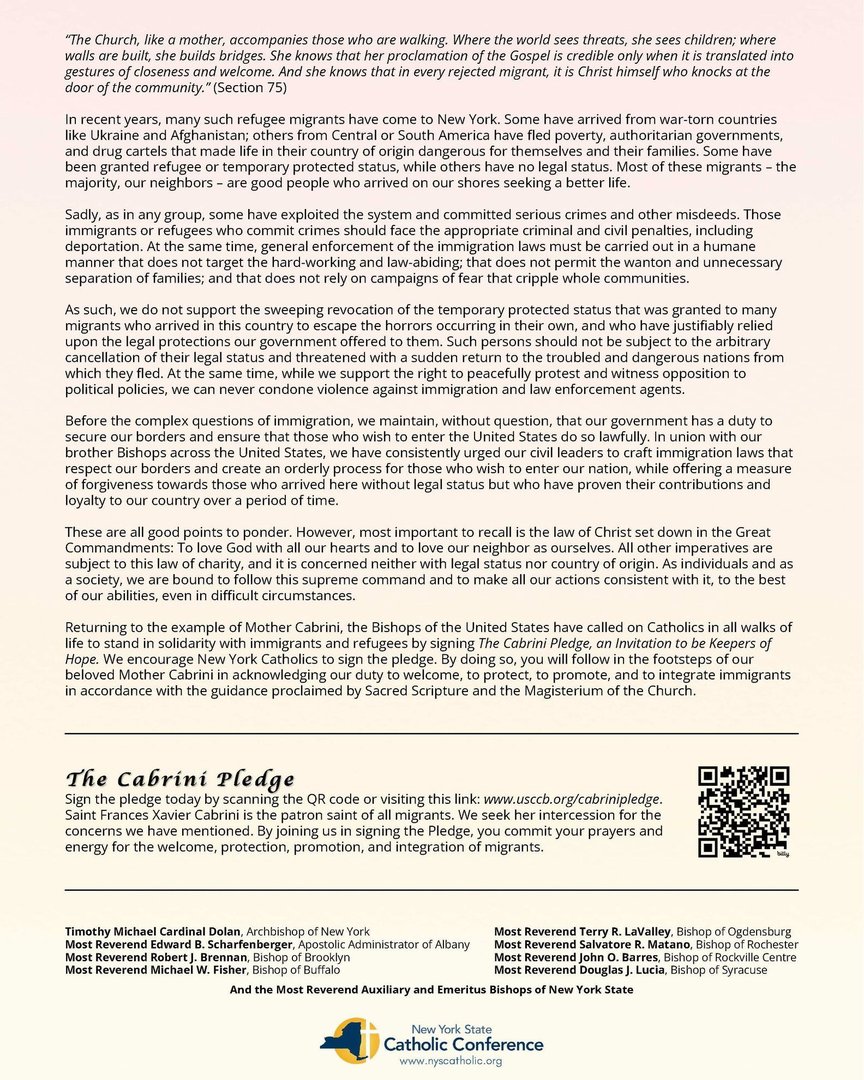 On the Feast of St. Frances Xavier Cabrini, the bishops of New York State have issued this important statement about the obligation to carry out enforcement of immigration policy "in a humane manner that does not target the hard-working and law-abiding; that does not permit the wanton and unnecessary separation of families; and that does not rely on campaigns of fear that cripple whole communities."
