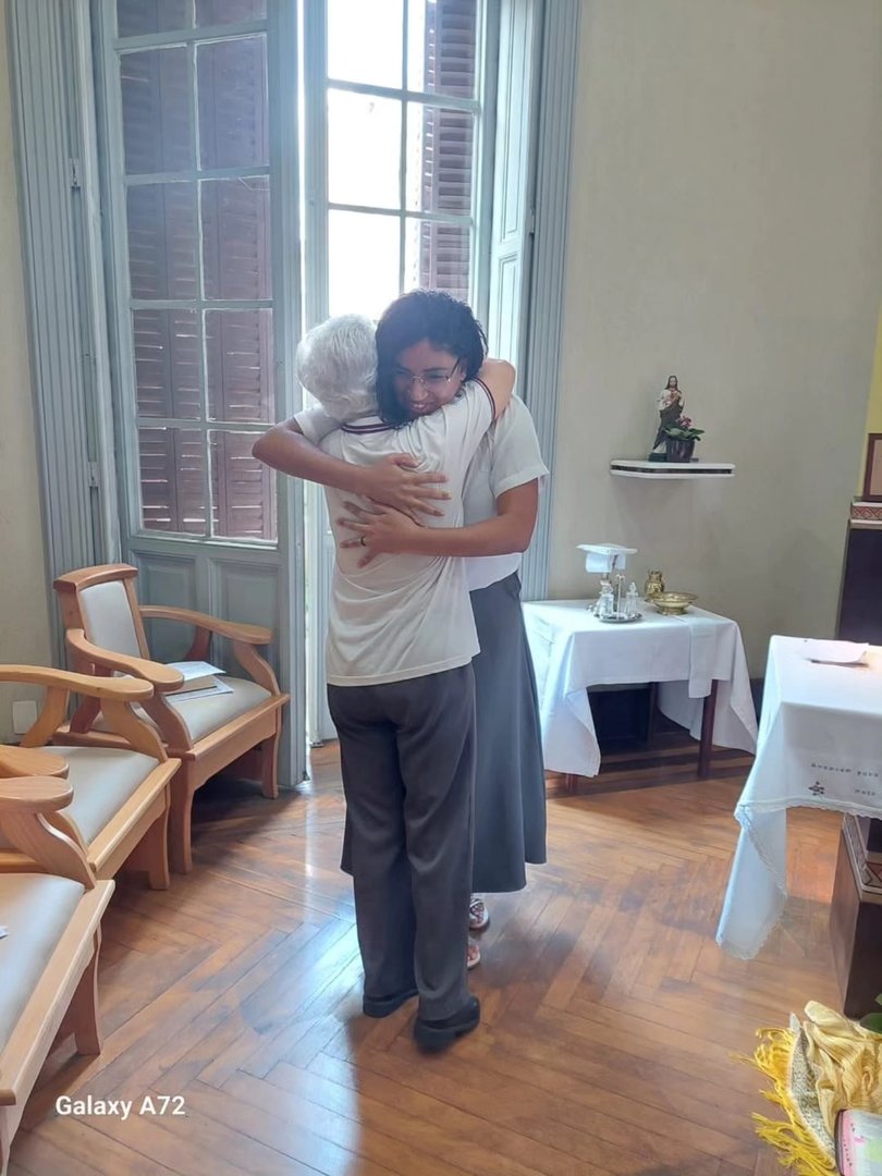 In the first photo: Stéphany hugging Sr. Gloria