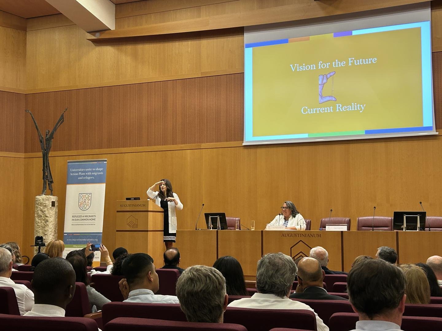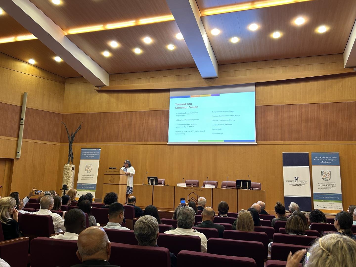 Durante varias intervenciones se pone de manifiesto que la Universidad de Villanova es un ejemplo concreto de cómo las universidades pueden convertirse en espacios de apoyo para los migrantes y los refugiados.