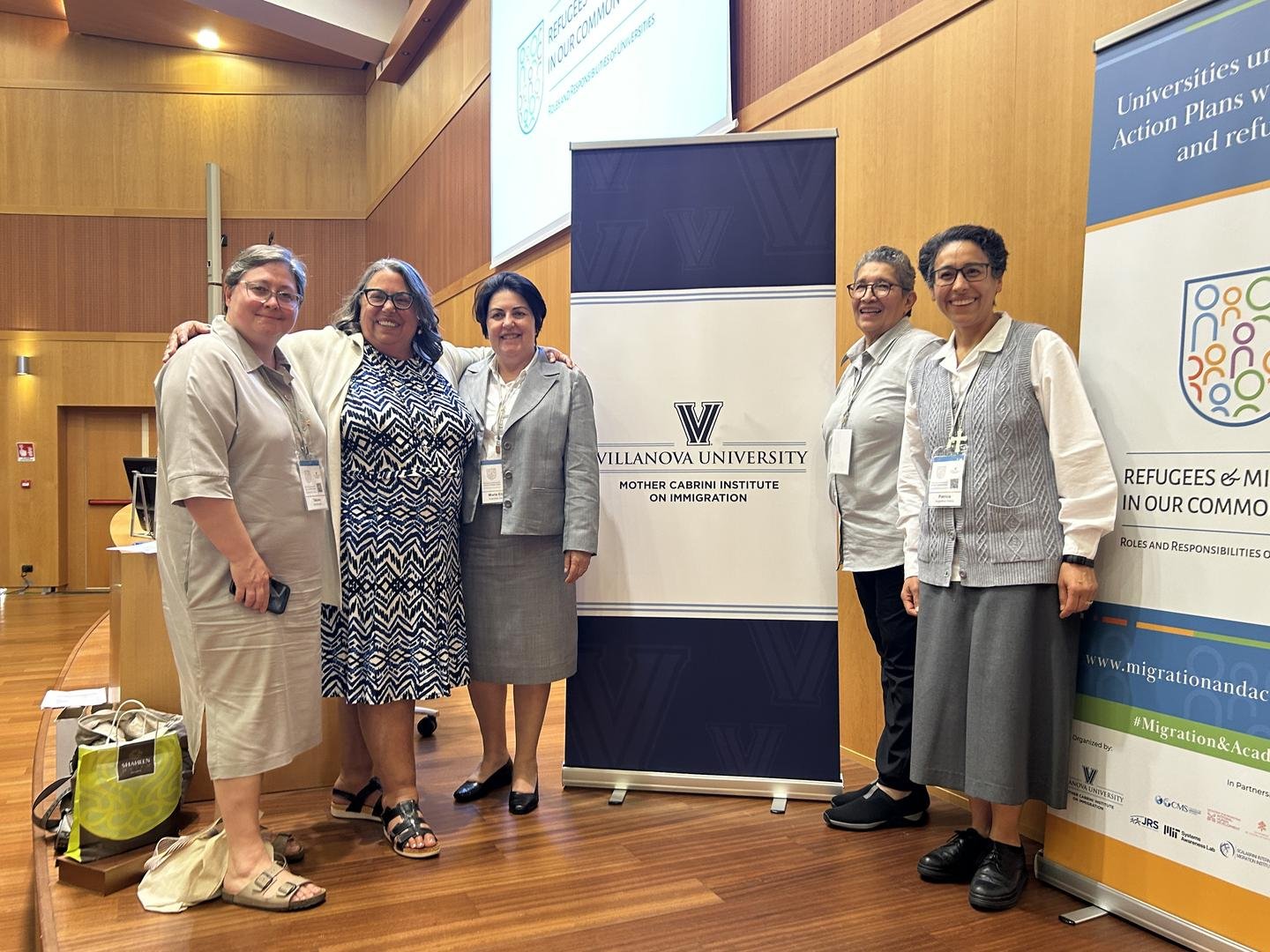 Del 1 al 3 de octubre, en el Instituto Patrístico Augustinianum, se celebró el ciclo de encuentros titulado «Refugiados y migrantes en nuestra casa común: movilizar a las comunidades académicas para la acción», organizado por la Universidad de Villanova y el Instituto Madre Cabrini sobre Inmigración. Participaron en estos encuentros la Superiora General, hna. María Eliane Azevedo Da Silva, la Asistente General, hna. Patricia Godoy, las MSC hna. Tatiana Advokushina, hna. Joseane Cabral Soares, hna. Yolanda Flores y Javier Ramírez-Baron, director ejecutivo de Cabrini Immigrant Services.