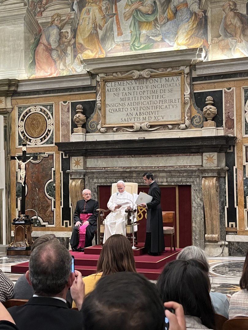 El 2 de octubre por la mañana tuvimos la gracia de participar en la audiencia en la sala Clementina con el papa León XIV. En su discurso, el Santo Padre nos recordó la urgencia de oponernos a la globalización de la indiferencia. A continuación, subrayó que los pilares sobre los que deben basarse los «planes de acción» de los ámbitos académicos para los migrantes y los refugiados son la enseñanza, la investigación, el servicio y el apoyo. Sugiere dos temas que deben integrarse en estos planes de acción: la reconciliación y la esperanza, recordando que los migrantes y los refugiados son testigos privilegiados de la esperanza a través de su resiliencia y su confianza en Dios.