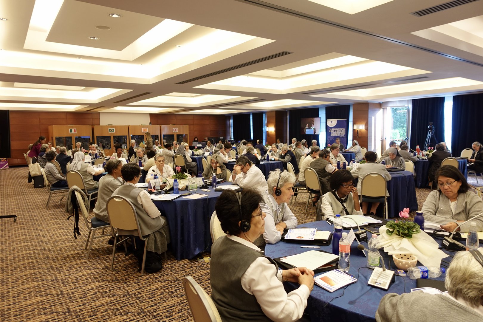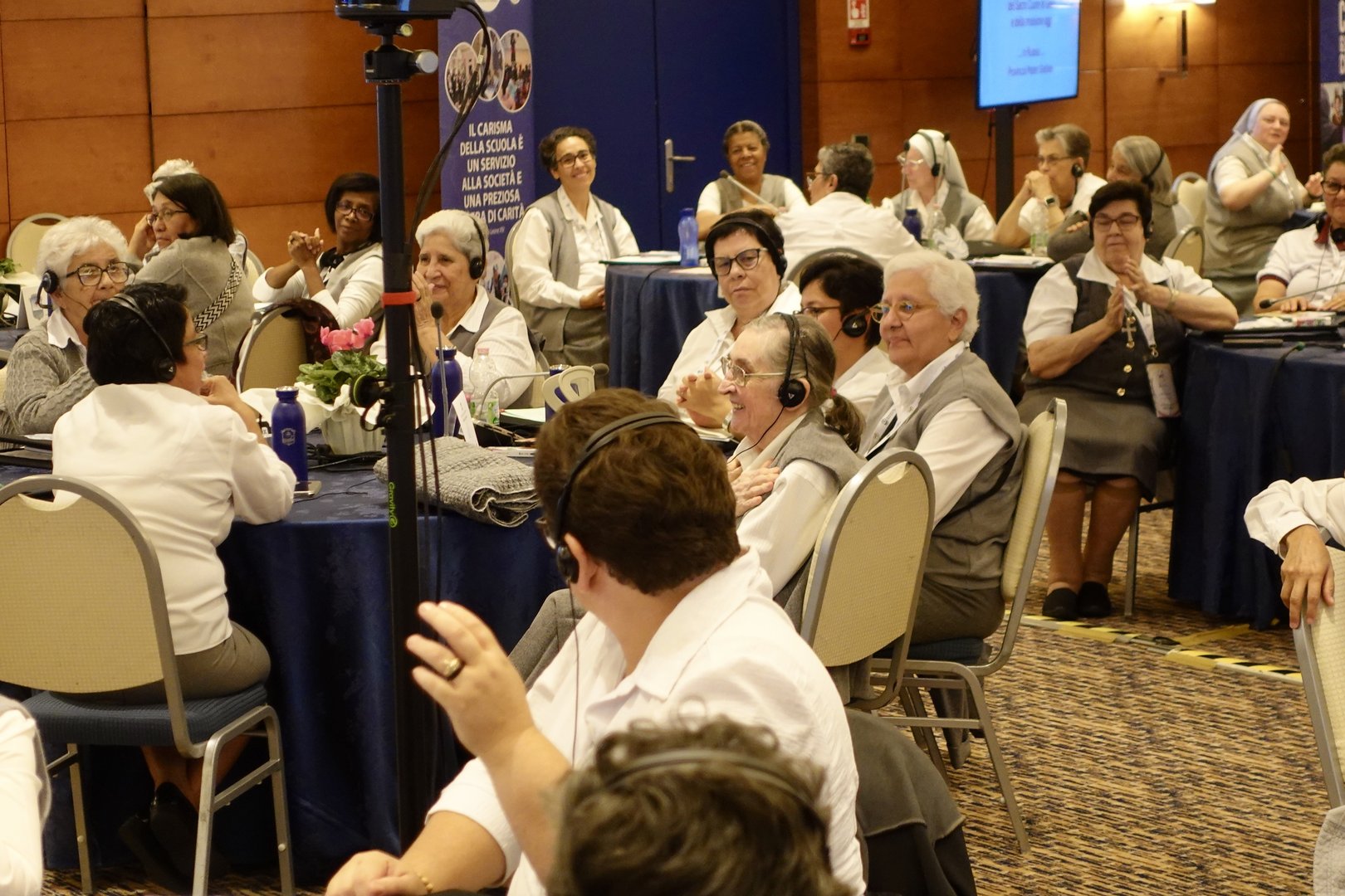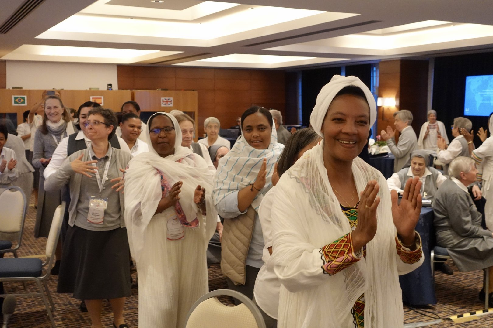 Oggi secondo giorno dell’Assemblea Globale delle Missionarie del Sacro Cuore di Gesù dal titolo "Donne Consacrate Pellegrine di Speranza" presso l'hotel Ergife a Roma. Dopo la preghiera del mattino si è tenuta la conferenza dal titolo "La spiritualità del Sacro Cuore di Gesù" di Padre Josè Cristo Rey Garcìa Paredes, CMF, Congregazione dei missionari figli del Cuore Immacolato di Maria. Successivamente, si è svolta la tavola rotonda dal titolo "L'espressione della spiritualità del Sacro Cuore di Gesù e della missione oggi" dove quattro suore hanno condiviso la declinazione di questa espressione ciascuna nella propria Provincia e Regione. Così Sr. Tatiana ha parlato del quadro che è stato realizzato pochi mesi fa sul Sacro Cuore da una pittrice russa e della missione in Russia, Sr. Gloria della sua esperienza in Brasile,  Sr. Alemenesh di quella in Etiopia e Sr. Eileen negli Stati Uniti. La giornata ha proseguito con la Santa Messa presieduta dal vescovo di Lodi S. E. R. Mons. Maurizio Malvestiti, concelebrata da padre Josè Cristo Rey Garcìa Paredes, CMF. La giornata si è conclusa con la serata Karaoke dove si sono cantati e ballati diversi brani tradizionali di alcuni paesi.