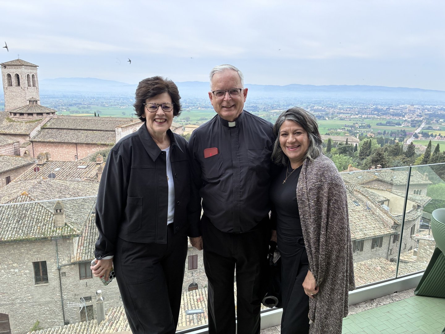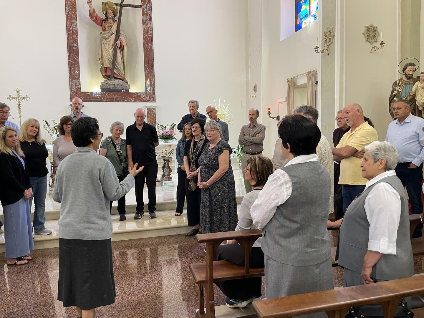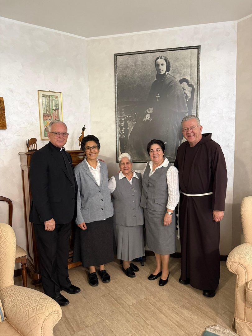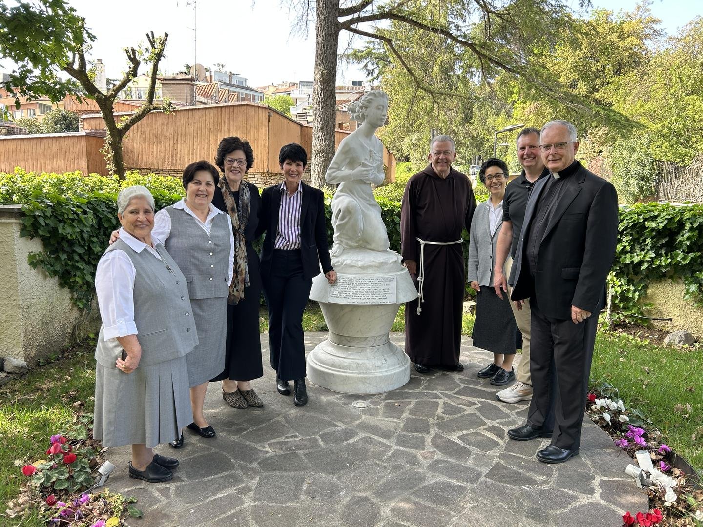 I 6 pellegrini che sono arrivati in visita presso il Generalato erano: JoAnn Seaman, direttrice esecutiva del Mother Cabrini Shrine in Colorado, Christopher La Bianco direttore esecutivo della Cabrini Mission Foundation, un frate e un sacerdote che hanno cura dell’aspetto liturgico, della spiritualità del Santuario ovvero Fr. John Lager, O.F.M., Cap. e Fr. Bob Fisher e due pellegrine che si occupano di girare video o foto in questo viaggio, Kyle Dyer e Julie Andrews.