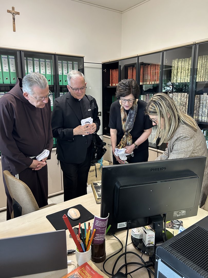 Più tardi, dopo aver visto l’ufficio di Suor Stella Maris, Assistente Generale, e quello della Superiora Generale,  Sr. Maria Eliane, hanno visitato l’archivio con l’aiuto della nostra archivista Francesca e della nostra segretaria Claudia. Sono rimasti affascinati dai volumi e dagli scritti di Madre Cabrini che sono ancora perfettamente conservati nell’archivio della Curia. Hanno anche apprezzato il grande lavoro che si sta compiendo in merito alla digitalizzazione di alcuni volumi a scopo conservativo.