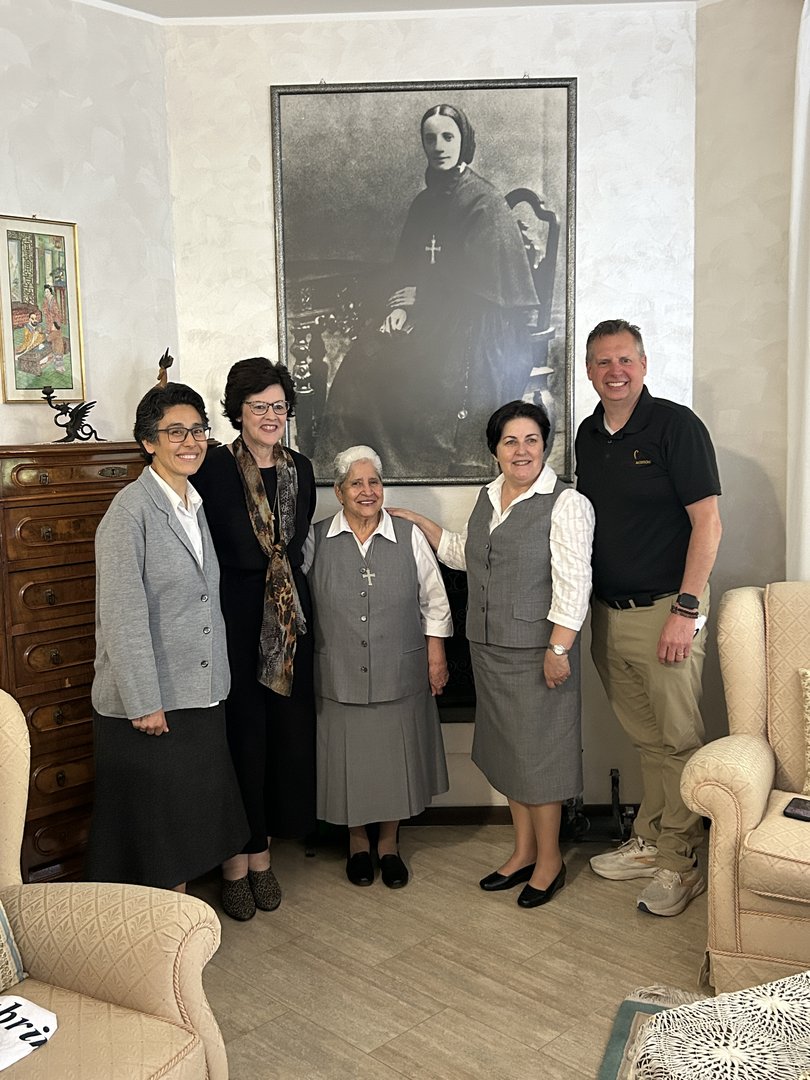 Il 15 aprile mattina li abbiamo ricevuti nella Curia Generalizia di Roma. Ad accoglierli la Superiora generale, Sr. Maria Eliane e le due Assistenti Generali presenti a Roma, Sr. Gilda e sr. Patricia.